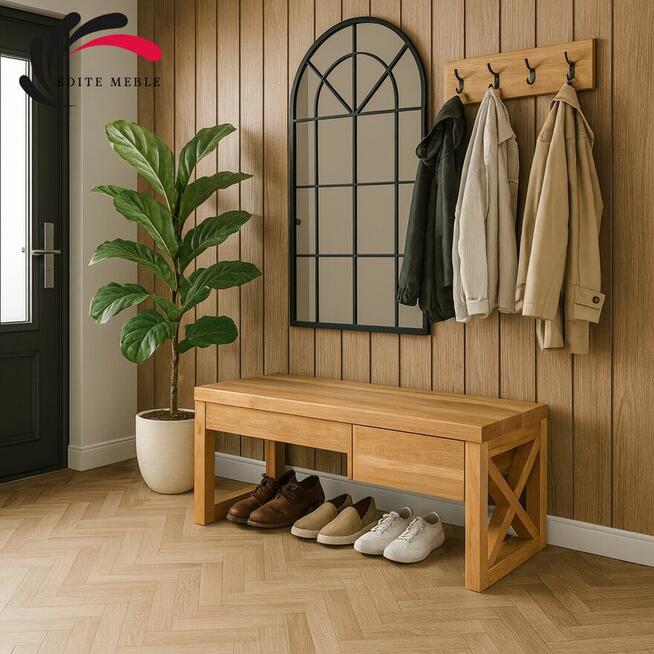 Ławka LB-34 z litego drewna (olcha lub dąb) to solidny, estetyczny mebel do przedpokoju i holu, który łączy funkcję ...