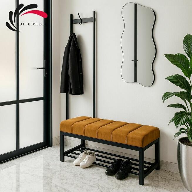 Ławka tapicerowana LGS-7 w eleganckim odcieniu popiel z tkaniną premium (Paradis 10) to funkcjonalny akcent do przedpokoju, ...